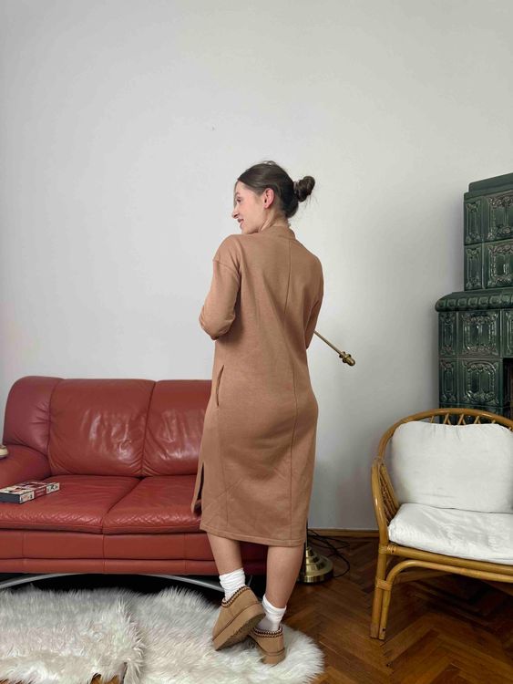 Трикотажна сукня міді з горловиною-стійкою та секретиками для 🤱