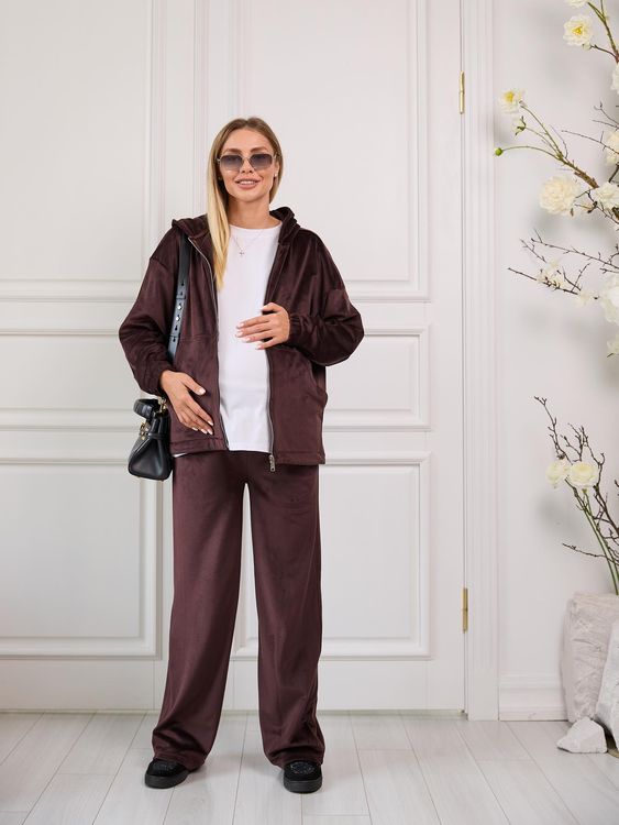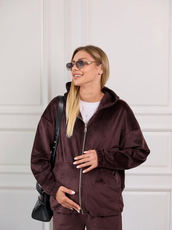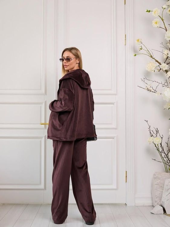Неймовірне поєднання штанів палаццо з оверсайз худі на молнії - і це все з дуже теплої тканини: велюровий на хутрі😍