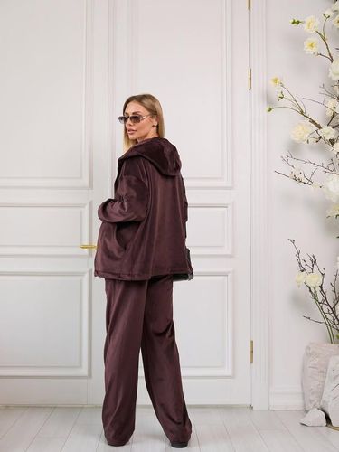 Утеплений велюровий костюм шоколадного кольору