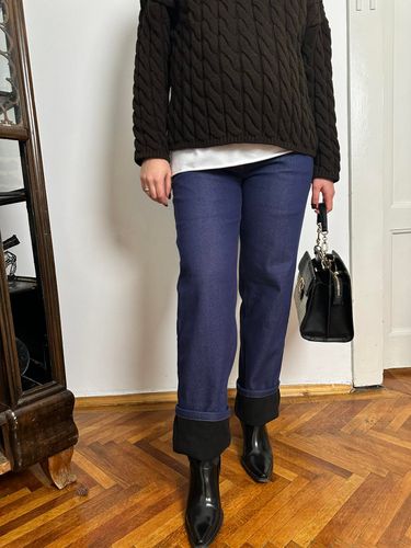 Цупкий джинс утеплений мягеньким стриженим хутром, що добре тримає форму прямого крою👌