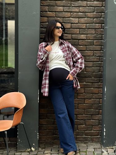 Джинсова спинка + бавовняна вставка з регулюванням, дозволяє носити від найменших термінів - протягом всієї вагітності🤰