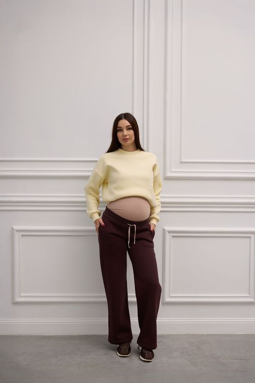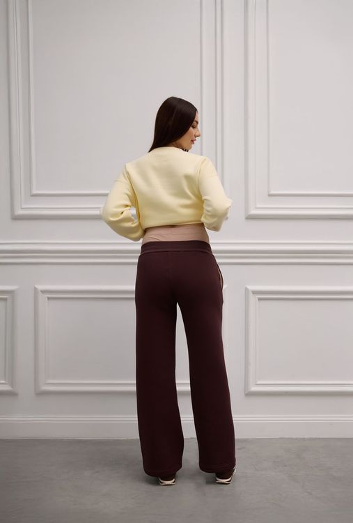 Штани прямого крою палаццо з утепленням флісу☺️в трендовом шоколадному кольорі