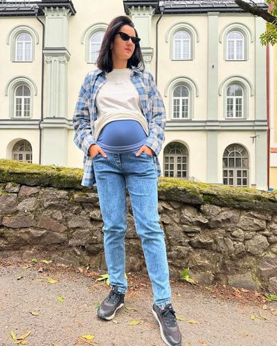 Тип пояса - комбінований: низький пояс під животик з 2-ма перфорованими резинками + високий бавовняний трикотажний пояс з перфорованою гумкою, дозволяють регулювати об'єм пояса під різний термін вагітності та носити цю модель після (попередньо прибравши високий пояс)☝