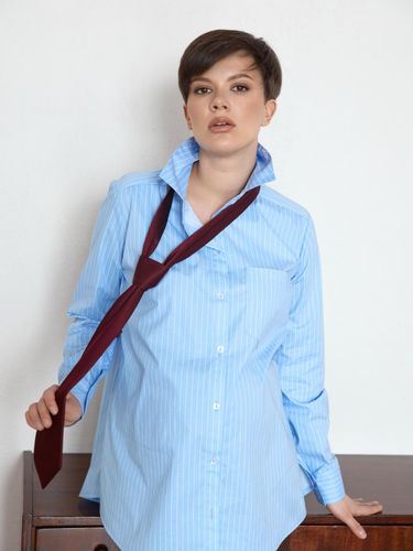 Блакитна сорочка - це твоя ідеальна база для створення весняних образів🌸